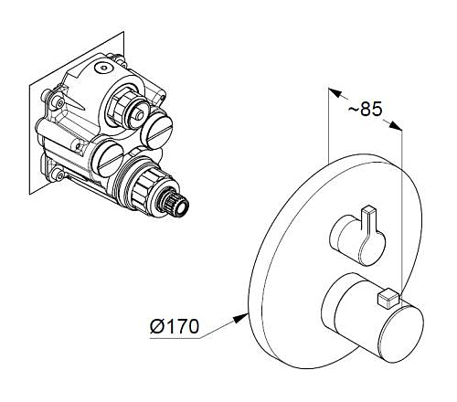 Смеситель для ванны и душа KLUDI Nova Fonte Puristic 208305315 предназначен для подачи горячей и холодной воды в ванных помещениях. Термостатический картридж обеспечивает подачу воды заданной температуры, что исключает ожоги. Дополнительные характеристики: