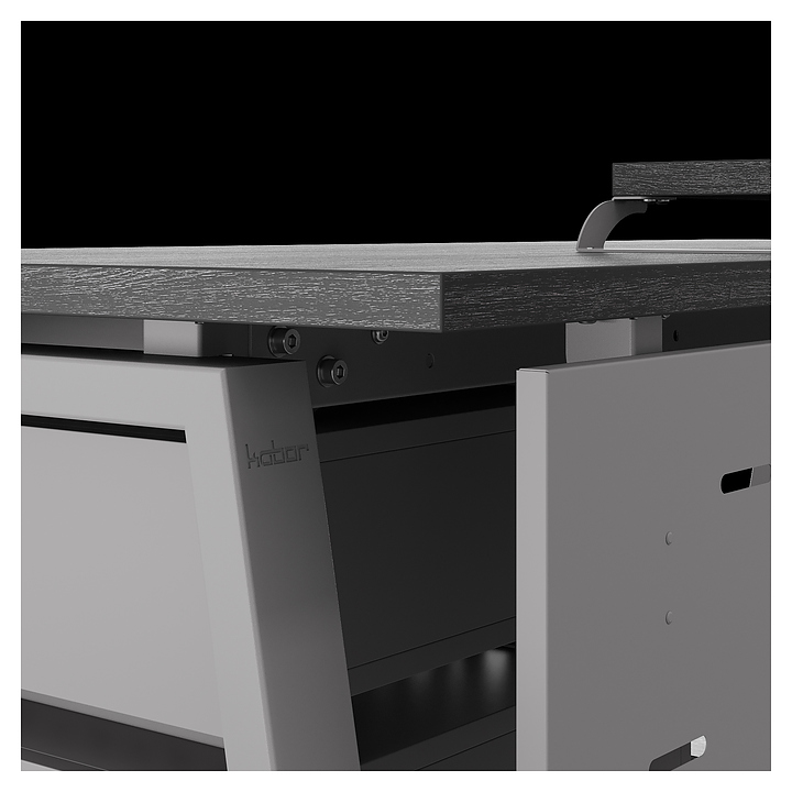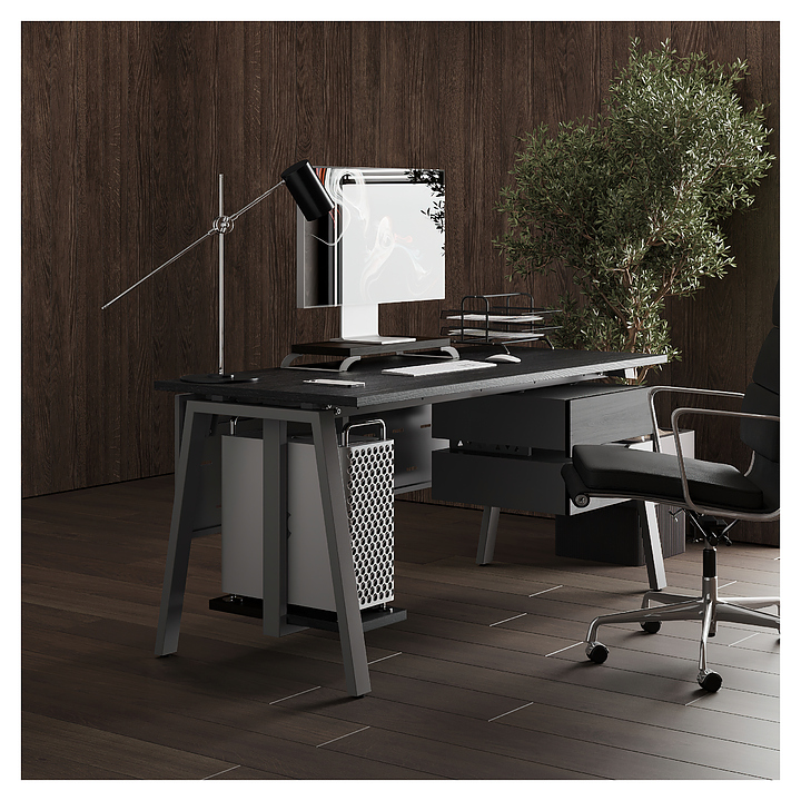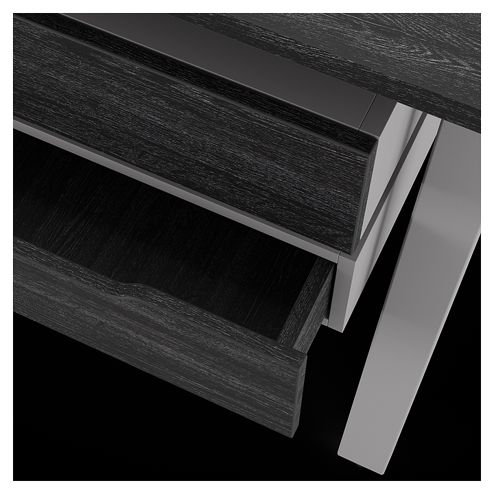 Офисный стол Кобор A-100/70 aluminum/glazed используется в офисных помещениях и кабинетах руководителей. Модель оснащена A-образными опорами. Каркас выполнен из металла, выкрашенного в цвет алюминиевый металлик (RAL9006), столешница – из ламинированной древесно-стружечной плиты (ЛДСП) цвета черный дуб (H3178 ST37). Опции (заказываются отдельно):