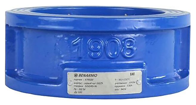 Клапан обратный Benarmo 2-створчатый Ду 400 Ру 10/16 межфланцевый, чугун, EPDM