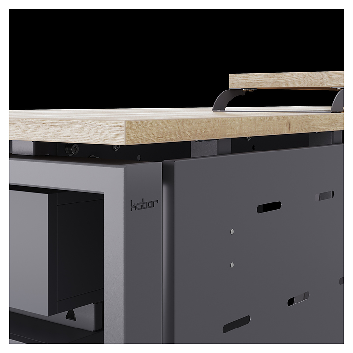 Офисный стол Кобор AB-140/80 graphite/natural используется в офисных помещениях и кабинетах руководителей. Модель оснащена A-образными опорами со скошенными фронтальными сегментами. Каркас выполнен из металла, выкрашенного в цвет графит муар (RAL7024), столешница – из ламинированной древесно-стружечной плиты (ЛДСП) цвета натуральный дуб (H1180 ST37). Опции (заказываются отдельно):