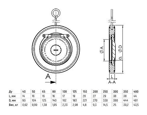 Клапан обратный Benarmo 1-створчатый Ду 250 Ру16 межфланцевый