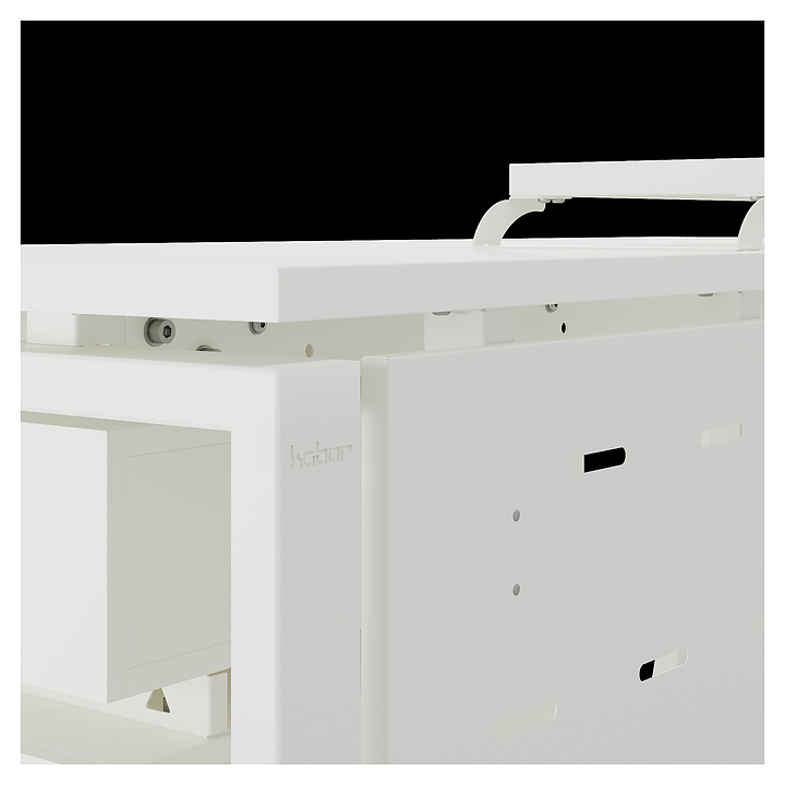 Офисный стол Кобор AB-180/80 white/premium используется в офисных помещениях и кабинетах руководителей. Модель оснащена A-образными опорами со скошенными фронтальными сегментами. Каркас выполнен из металла, выкрашенного в цвет белый муар (RAL9016), столешница – из ламинированной древесно-стружечной плиты (ЛДСП) цвета белый премиум (W1000 ST9). Опции (заказываются отдельно):