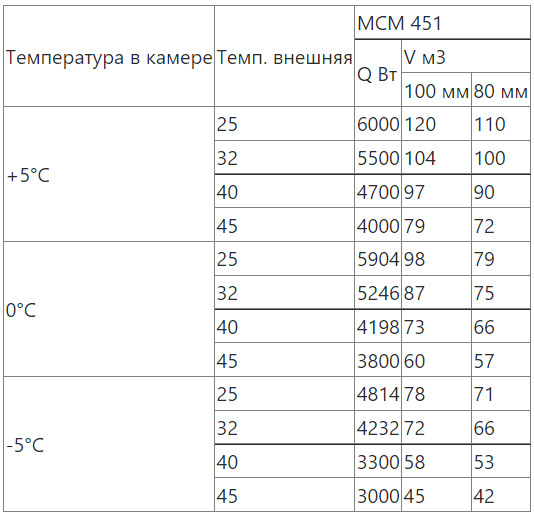 Сплит-системы на объем холодильных камер подобраны при обязательном соблюдении следующих условий эксплуатации: