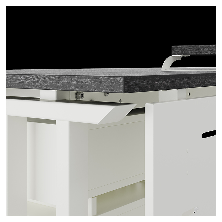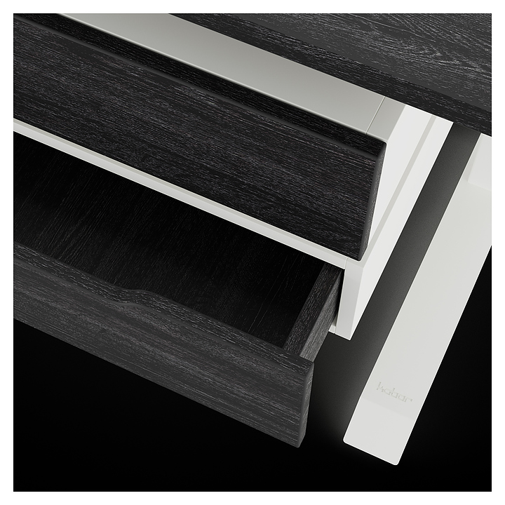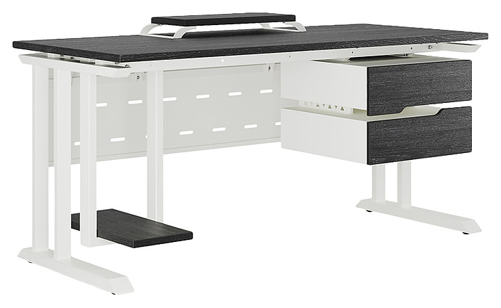 Офисный стол Кобор L1-120/60 white/glazed используется в офисных помещениях и кабинетах руководителей. Модель оснащена L-образными опорами. Каркас выполнен из металла, выкрашенного в цвет белый муар (RAL9016), столешница – из ламинированной древесно-стружечной плиты (ЛДСП) цвета черный дуб (H3178 ST37). Опции (заказываются отдельно):