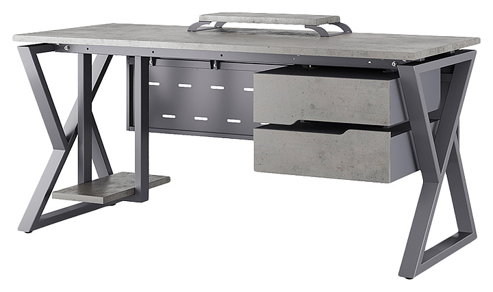 Офисный стол Кобор W-80/80 graphite/chicago используется в офисных помещениях и кабинетах руководителей. Модель оснащена W-образными опорами. Каркас выполнен из металла, выкрашенного в цвет графит муар (RAL7024), столешница – из ламинированной древесно-стружечной плиты (ЛДСП) цвета бетон чикаго (F186 ST9). Опции (заказываются отдельно):
