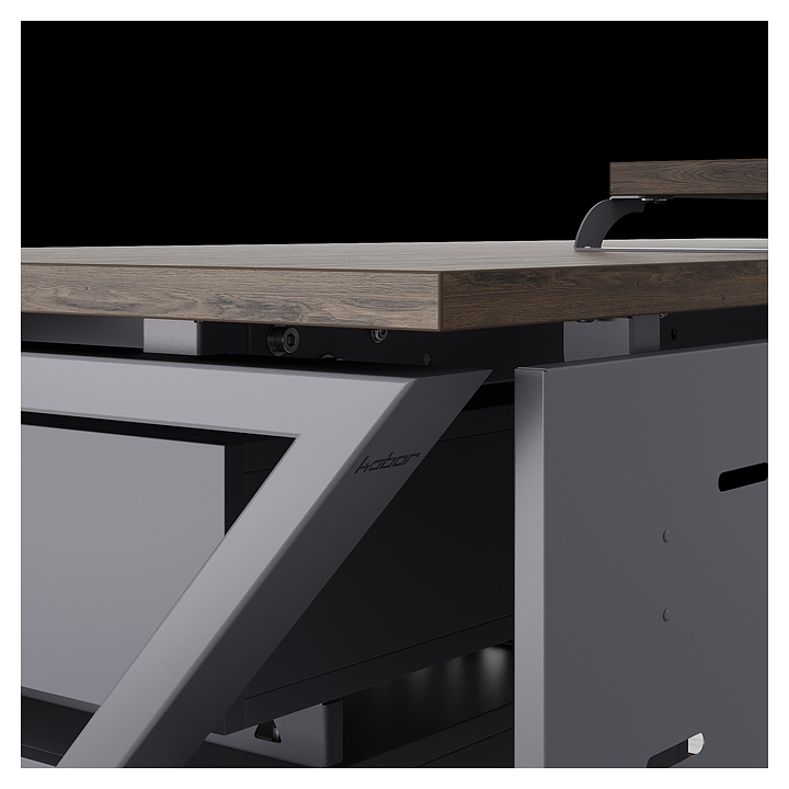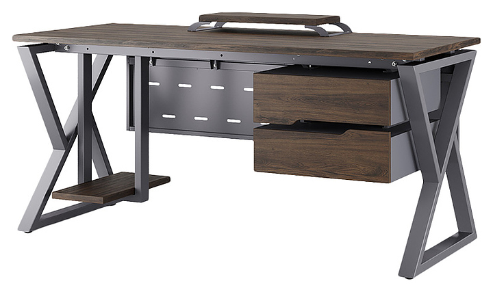 Офисный стол Кобор W-120/80 graphite/charlston используется в офисных помещениях и кабинетах руководителей. Модель оснащена W-образными опорами. Каркас выполнен из металла, выкрашенного в цвет графит муар (RAL7024), столешница – из ламинированной древесно-стружечной плиты (ЛДСП) цвета дуб чарльстон (H3154 ST36). Опции (заказываются отдельно):