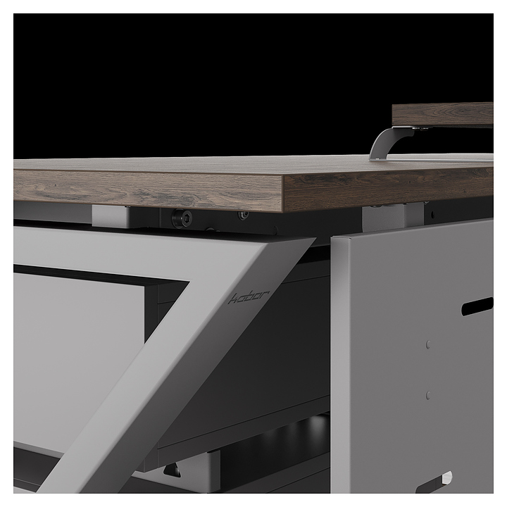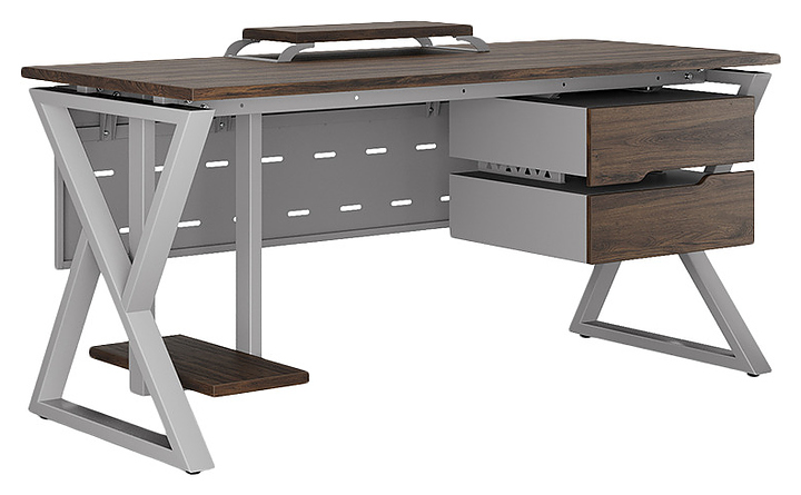 Офисный стол Кобор W-80/80 aluminum/charlston используется в офисных помещениях и кабинетах руководителей. Модель оснащена W-образными опорами. Каркас выполнен из металла, выкрашенного в цвет алюминиевый металлик (RAL9006), столешница – из ламинированной древесно-стружечной плиты (ЛДСП) цвета дуб чарльстон (H3154 ST36). Опции (заказываются отдельно):