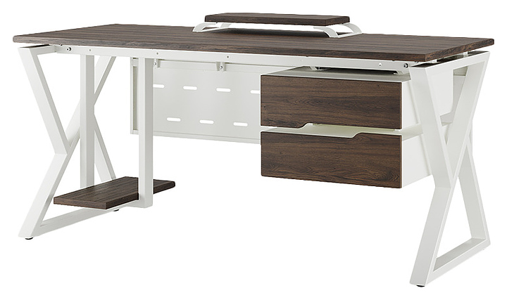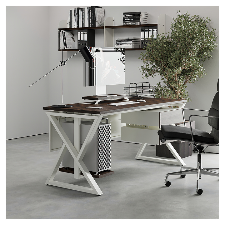 Офисный стол Кобор W-140/80 white/charlston используется в офисных помещениях и кабинетах руководителей. Модель оснащена W-образными опорами. Каркас выполнен из металла, выкрашенного в цвет белый муар (RAL9016), столешница – из ламинированной древесно-стружечной плиты (ЛДСП) цвета дуб чарльстон (H3154 ST36). Опции (заказываются отдельно):