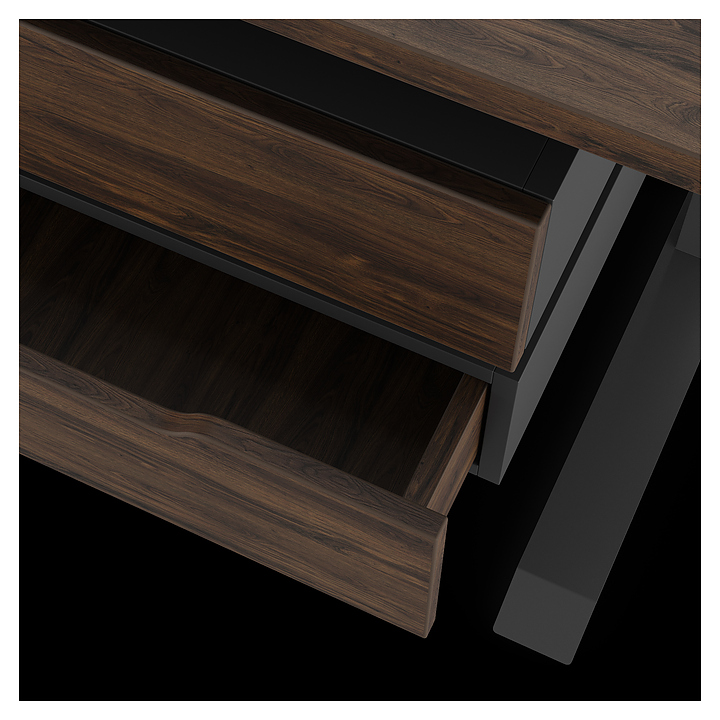 Офисный стол Кобор L2-100/80 black/charlston используется в офисных помещениях и кабинетах руководителей. Модель оснащена L-образными опорами с декоративными вставками на боковинах. Каркас выполнен из металла, выкрашенного в цвет черный муар (RAL9005), столешница – из ламинированной древесно-стружечной плиты (ЛДСП) цвета дуб чарльстон (H3154 ST36). Опции (заказываются отдельно):