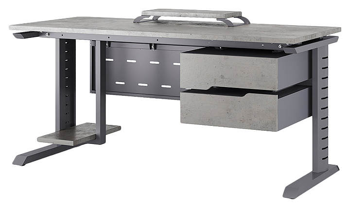 Офисный стол Кобор L2-100/60 graphite/chicago используется в офисных помещениях и кабинетах руководителей. Модель оснащена L-образными опорами с декоративными вставками на боковинах. Каркас выполнен из металла, выкрашенного в цвет графит муар (RAL7024), столешница – из ламинированной древесно-стружечной плиты (ЛДСП) цвета бетон чикаго (F186 ST9). Опции (заказываются отдельно):