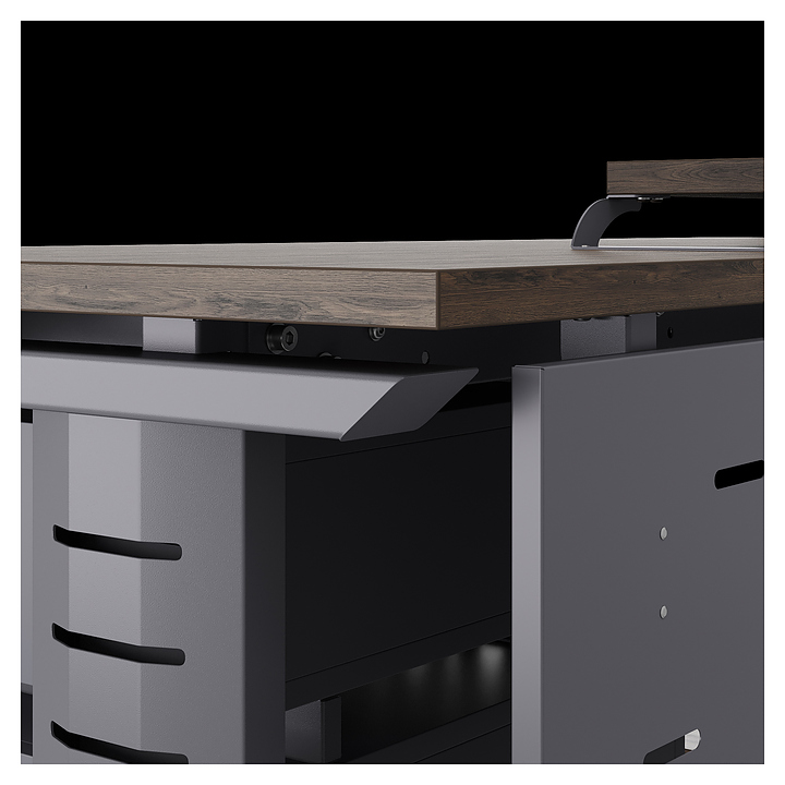 Офисный стол Кобор L2-120/60 graphite/charlston используется в офисных помещениях и кабинетах руководителей. Модель оснащена L-образными опорами с декоративными вставками на боковинах. Каркас выполнен из металла, выкрашенного в цвет графит муар (RAL7024), столешница – из ламинированной древесно-стружечной плиты (ЛДСП) цвета дуб чарльстон (H3154 ST36). Опции (заказываются отдельно):