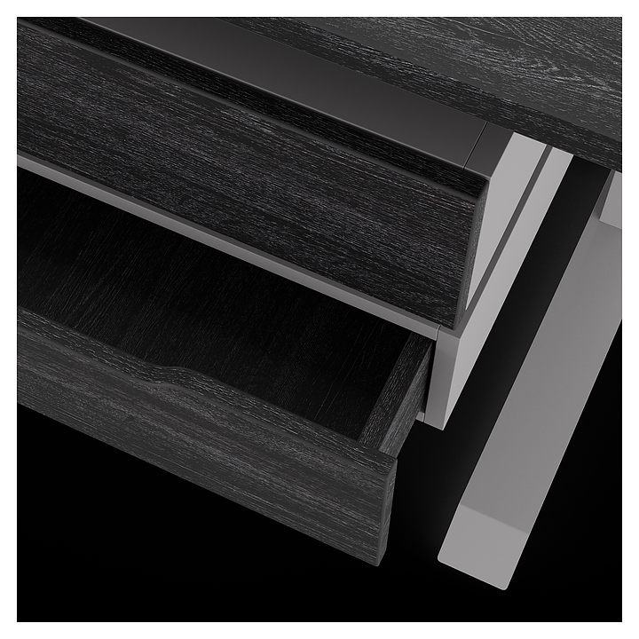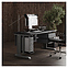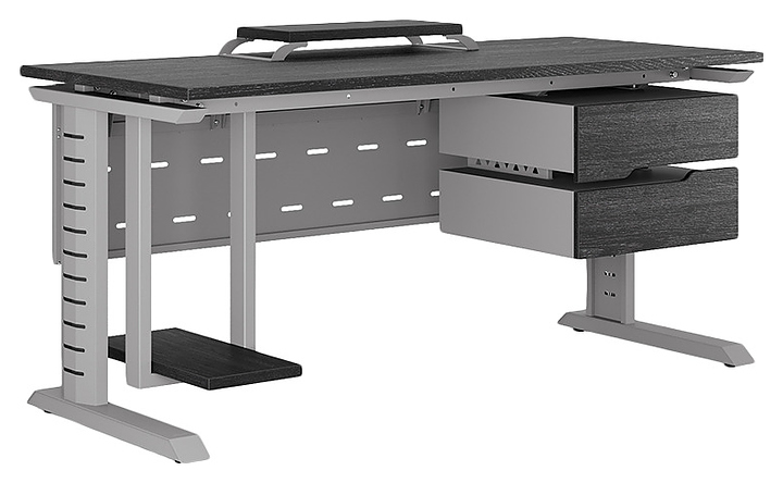 Офисный стол Кобор L2-160/80 aluminum/glazed используется в офисных помещениях и кабинетах руководителей. Модель оснащена L-образными опорами с декоративными вставками на боковинах. Каркас выполнен из металла, выкрашенного в цвет алюминиевый металлик (RAL9006), столешница – из ламинированной древесно-стружечной плиты (ЛДСП) цвета черный дуб (H3178 ST37). Опции (заказываются отдельно):