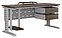 Офисный стол Кобор L2-120/80 aluminum/charlston используется в офисных помещениях и кабинетах руководителей. Модель оснащена L-образными опорами с декоративными вставками на боковинах. Каркас выполнен из металла, выкрашенного в цвет алюминиевый металлик (RAL9006), столешница – из ламинированной древесно-стружечной плиты (ЛДСП) цвета дуб чарльстон (H3154 ST36). Опции (заказываются отдельно):