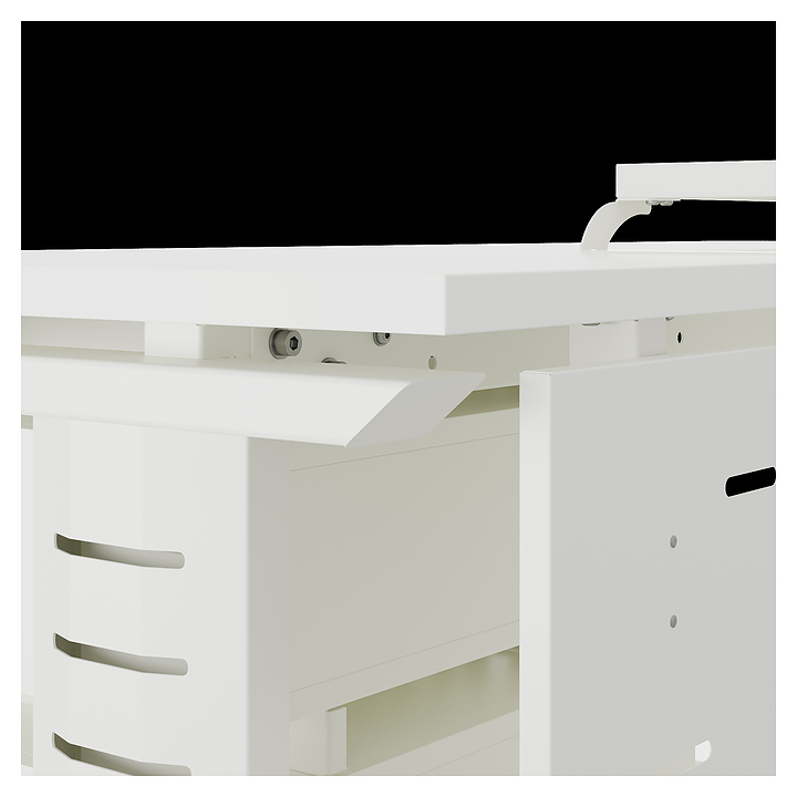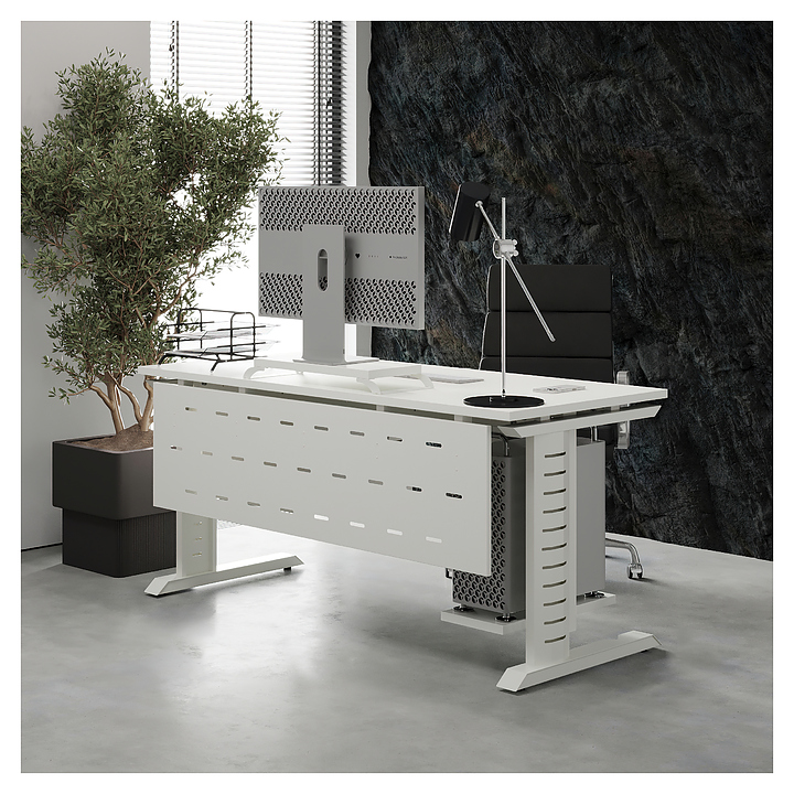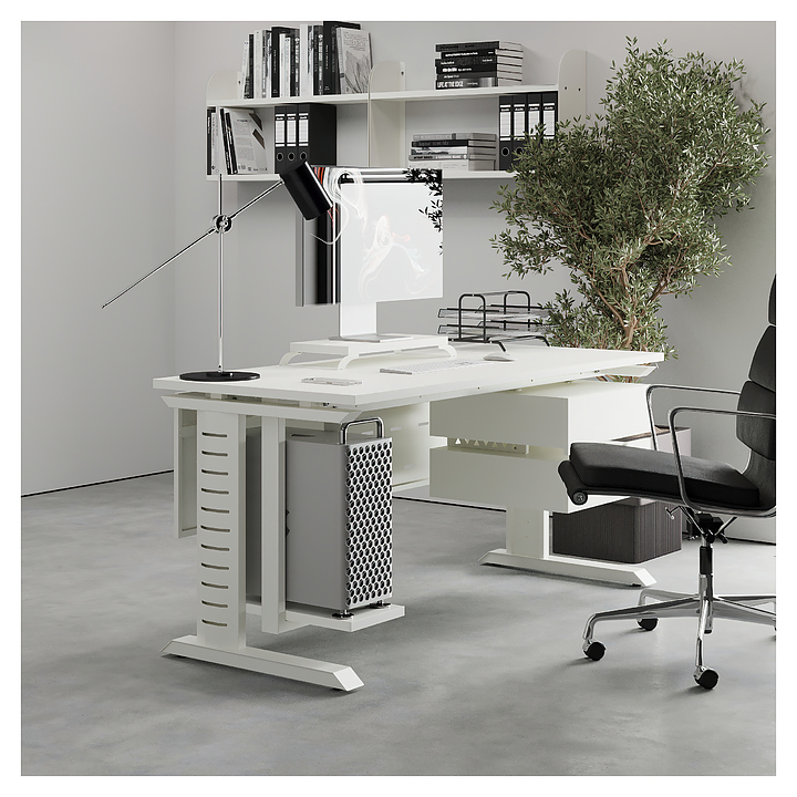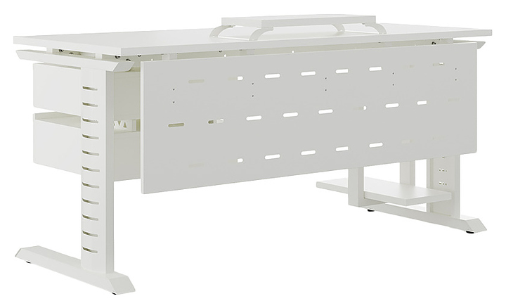 Офисный стол Кобор L2-140/80 white/premium используется в офисных помещениях и кабинетах руководителей. Модель оснащена L-образными опорами с декоративными вставками на боковинах. Каркас выполнен из металла, выкрашенного в цвет белый муар (RAL9016), столешница – из ламинированной древесно-стружечной плиты (ЛДСП) цвета белый премиум (W1000 ST9). Опции (заказываются отдельно):