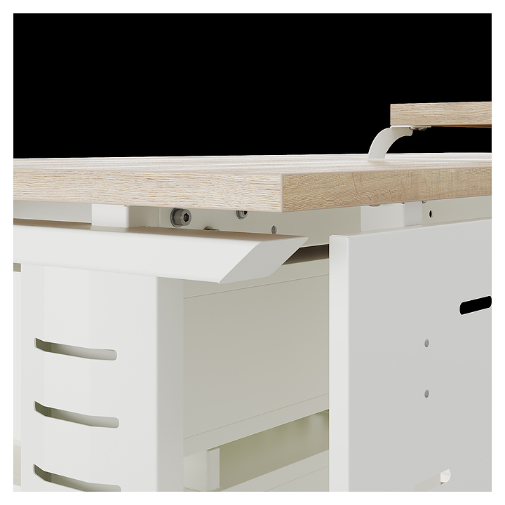 Офисный стол Кобор L2-180/60 white/natural используется в офисных помещениях и кабинетах руководителей. Модель оснащена L-образными опорами с декоративными вставками на боковинах. Каркас выполнен из металла, выкрашенного в цвет белый муар (RAL9016), столешница – из ламинированной древесно-стружечной плиты (ЛДСП) цвета натуральный дуб (H1180 ST37). Опции (заказываются отдельно):