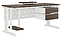 Офисный стол Кобор L2-160/60 white/charlston используется в офисных помещениях и кабинетах руководителей. Модель оснащена L-образными опорами с декоративными вставками на боковинах. Каркас выполнен из металла, выкрашенного в цвет белый муар (RAL9016), столешница – из ламинированной древесно-стружечной плиты (ЛДСП) цвета дуб чарльстон (H3154 ST36). Опции (заказываются отдельно):
