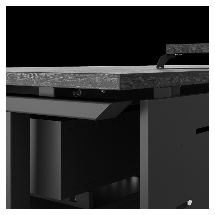 Офисный стол Кобор T-160/60 black/glazed используется в офисных помещениях и кабинетах руководителей. Модель оснащена T-образными опорами. Каркас выполнен из металла, выкрашенного в цвет черный муар (RAL9005), столешница – из ламинированной древесно-стружечной плиты (ЛДСП) цвета черный дуб (H3178 ST37). Опции (заказываются отдельно):