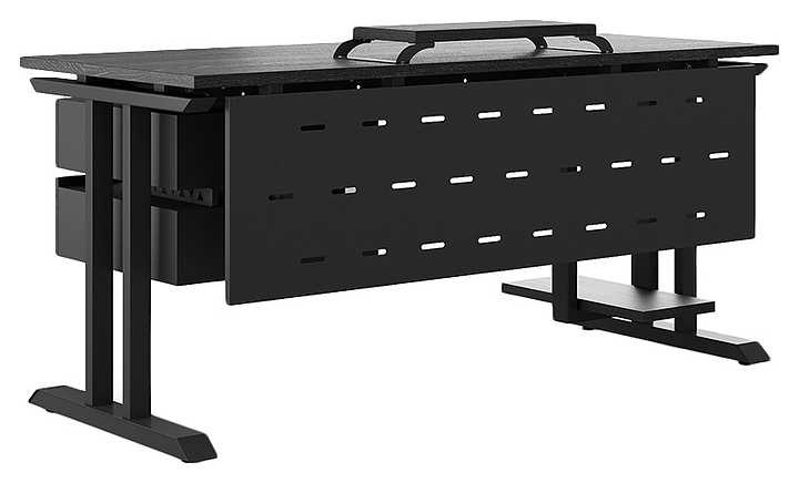 Офисный стол Кобор T-140/70 black/glazed используется в офисных помещениях и кабинетах руководителей. Модель оснащена T-образными опорами. Каркас выполнен из металла, выкрашенного в цвет черный муар (RAL9005), столешница – из ламинированной древесно-стружечной плиты (ЛДСП) цвета черный дуб (H3178 ST37). Опции (заказываются отдельно):