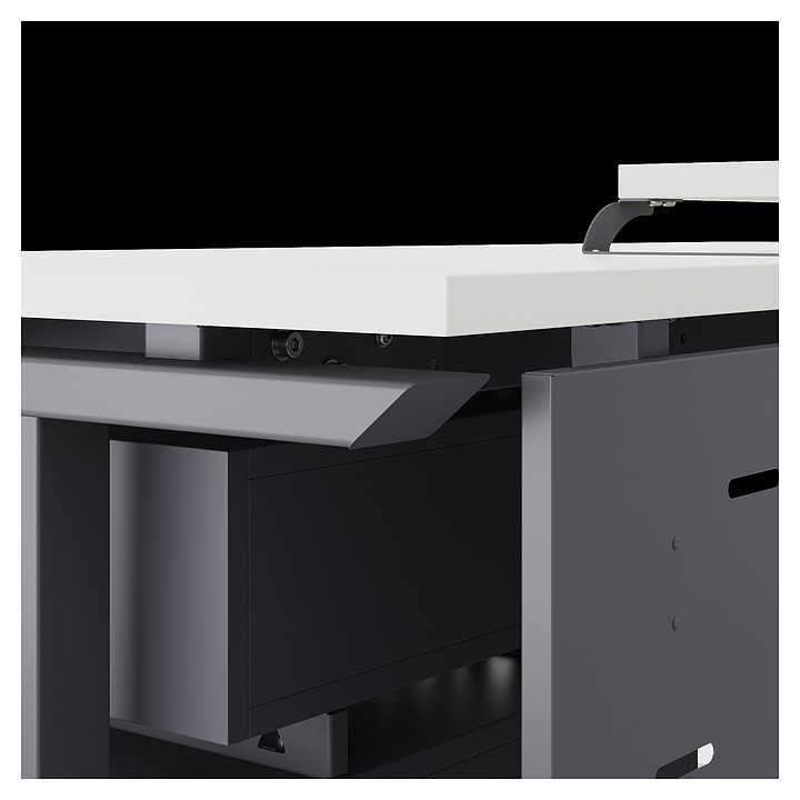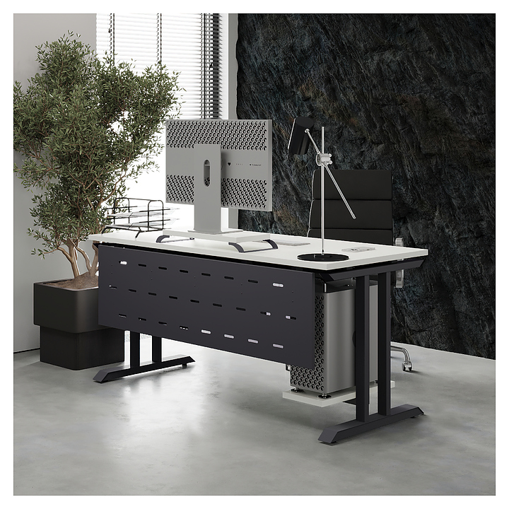 Офисный стол Кобор T-160/80 graphite/premium используется в офисных помещениях и кабинетах руководителей. Модель оснащена T-образными опорами. Каркас выполнен из металла, выкрашенного в цвет графит муар (RAL7024), столешница – из ламинированной древесно-стружечной плиты (ЛДСП) цвета белый премиум (W1000 ST9). Опции (заказываются отдельно):