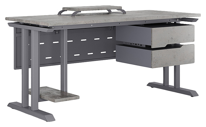 Офисный стол Кобор T-180/80 graphite/chicago используется в офисных помещениях и кабинетах руководителей. Модель оснащена T-образными опорами. Каркас выполнен из металла, выкрашенного в цвет графит муар (RAL7024), столешница – из ламинированной древесно-стружечной плиты (ЛДСП) цвета бетон чикаго (F186 ST9). Опции (заказываются отдельно):