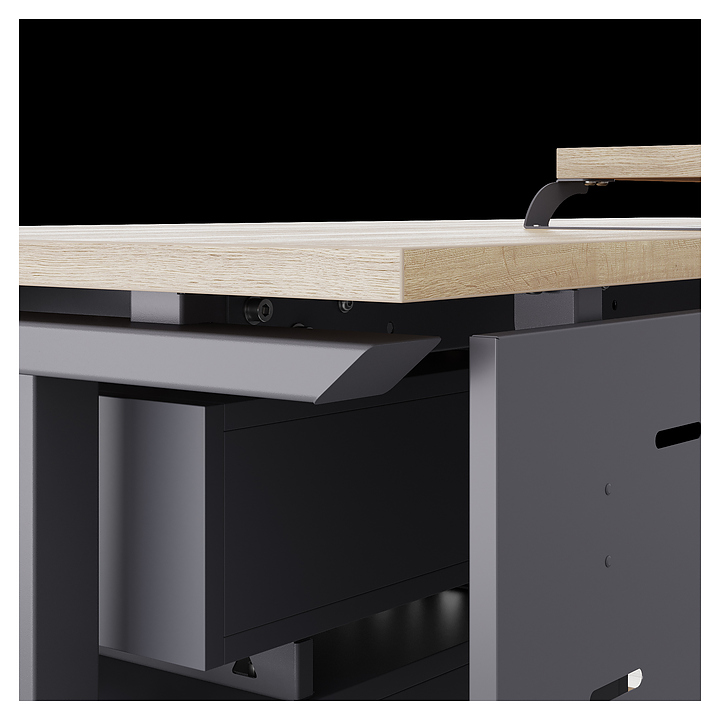 Офисный стол Кобор T-160/80 graphite/natural используется в офисных помещениях и кабинетах руководителей. Модель оснащена T-образными опорами. Каркас выполнен из металла, выкрашенного в цвет графит муар (RAL7024), столешница – из ламинированной древесно-стружечной плиты (ЛДСП) цвета натуральный дуб (H1180 ST37). Опции (заказываются отдельно):