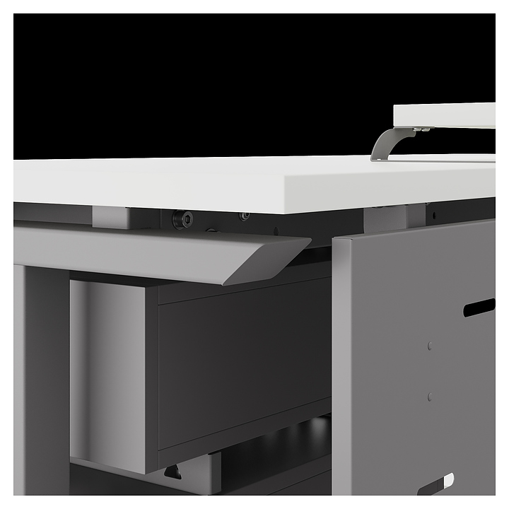 Офисный стол Кобор T-100/60 aluminum/premium используется в офисных помещениях и кабинетах руководителей. Модель оснащена T-образными опорами. Каркас выполнен из металла, выкрашенного в цвет алюминиевый металлик (RAL9006), столешница – из ламинированной древесно-стружечной плиты (ЛДСП) цвета белый премиум (W1000 ST9). Опции (заказываются отдельно):