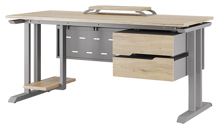 Офисный стол Кобор T-140/80 aluminum/natural используется в офисных помещениях и кабинетах руководителей. Модель оснащена T-образными опорами. Каркас выполнен из металла, выкрашенного в цвет алюминиевый металлик (RAL9006), столешница – из ламинированной древесно-стружечной плиты (ЛДСП) цвета натуральный дуб (H1180 ST37). Опции (заказываются отдельно):