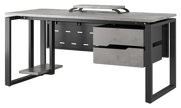 Офисный стол Кобор O1-120/70 black/chicago используется в офисных помещениях и кабинетах руководителей. Модель оснащена O-образными опорами. Каркас выполнен из металла, выкрашенного в цвет черный муар (RAL9005), столешница – из ламинированной древесно-стружечной плиты (ЛДСП) цвета бетон чикаго (F186 ST9). Опции (заказываются отдельно):