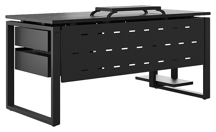 Офисный стол Кобор O1-160/70 black/glazed используется в офисных помещениях и кабинетах руководителей. Модель оснащена O-образными опорами. Каркас выполнен из металла, выкрашенного в цвет черный муар (RAL9005), столешница – из ламинированной древесно-стружечной плиты (ЛДСП) цвета черный дуб (H3178 ST37). Опции (заказываются отдельно):