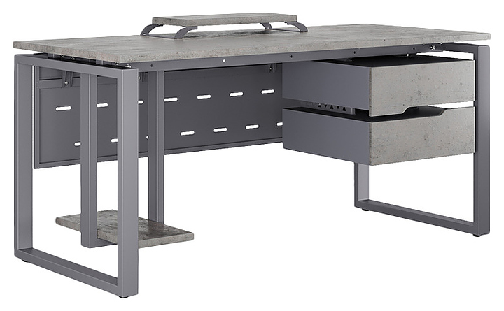 Офисный стол Кобор O1-160/60 graphite/chicago используется в офисных помещениях и кабинетах руководителей. Модель оснащена O-образными опорами. Каркас выполнен из металла, выкрашенного в цвет графит муар (RAL7024), столешница – из ламинированной древесно-стружечной плиты (ЛДСП) цвета бетон чикаго (F186 ST9). Опции (заказываются отдельно):