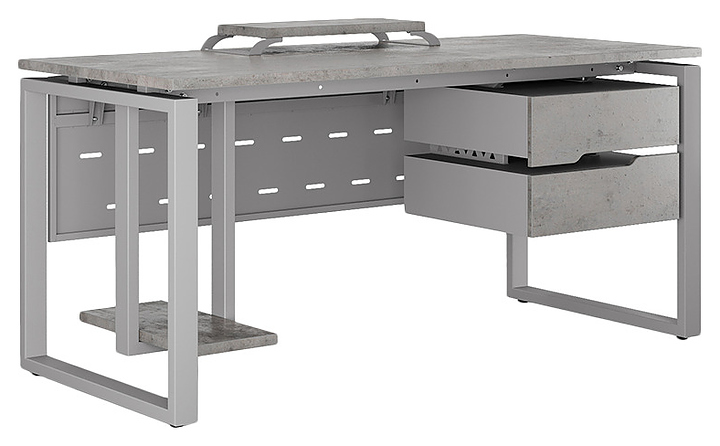 Офисный стол Кобор O1-160/80 aluminum/chicago используется в офисных помещениях и кабинетах руководителей. Модель оснащена O-образными опорами. Каркас выполнен из металла, выкрашенного в цвет алюминиевый металлик (RAL9006), столешница – из ламинированной древесно-стружечной плиты (ЛДСП) цвета бетон чикаго (F186 ST9). Опции (заказываются отдельно):