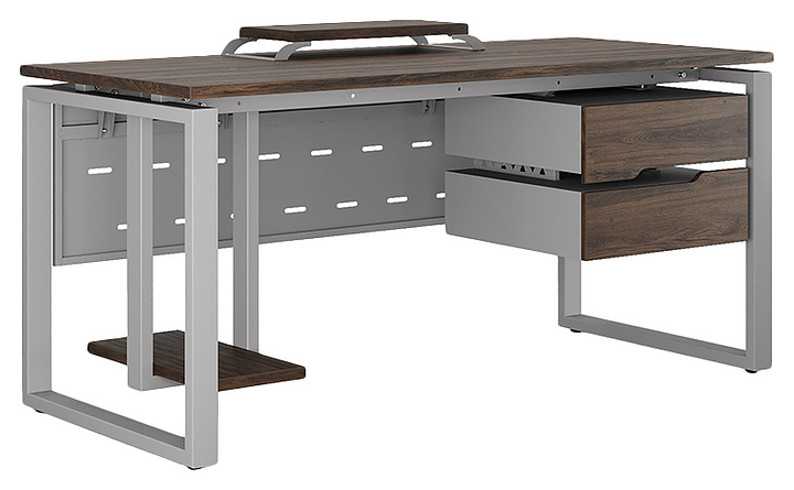 Офисный стол Кобор O1-100/70 aluminum/charlston используется в офисных помещениях и кабинетах руководителей. Модель оснащена O-образными опорами. Каркас выполнен из металла, выкрашенного в цвет алюминиевый металлик (RAL9006), столешница – из ламинированной древесно-стружечной плиты (ЛДСП) цвета дуб чарльстон (H3154 ST36). Опции (заказываются отдельно):