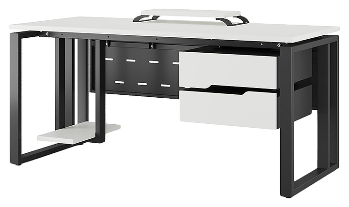 Офисный стол Кобор O2-180/70 black/premium используется в офисных помещениях и кабинетах руководителей. Модель оснащена усиленными вертикальной балкой O-образными опорами. Каркас выполнен из металла, выкрашенного в цвет черный муар (RAL9005), столешница – из ламинированной древесно-стружечной плиты (ЛДСП) цвета белый премиум (W1000 S9). Опции (заказываются отдельно):