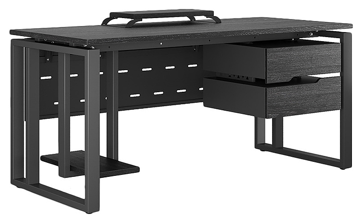 Офисный стол Кобор O2-100/80 black/glazed используется в офисных помещениях и кабинетах руководителей. Модель оснащена усиленными вертикальной балкой O-образными опорами. Каркас выполнен из металла, выкрашенного в цвет черный муар (RAL9005), столешница – из ламинированной древесно-стружечной плиты (ЛДСП) цвета черный дуб (H3178 ST37). Опции (заказываются отдельно):