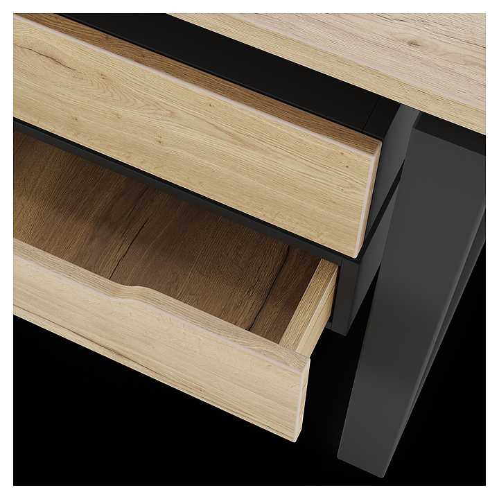 Офисный стол Кобор O2-140/70 black/natural используется в офисных помещениях и кабинетах руководителей. Модель оснащена усиленными вертикальной балкой O-образными опорами. Каркас выполнен из металла, выкрашенного в цвет черный муар (RAL9005), столешница – из ламинированной древесно-стружечной плиты (ЛДСП) цвета натуральный дуб (H1180 ST37). Опции (заказываются отдельно):