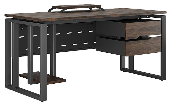 Офисный стол Кобор O2-160/60 black/charlston используется в офисных помещениях и кабинетах руководителей. Модель оснащена усиленными вертикальной балкой O-образными опорами. Каркас выполнен из металла, выкрашенного в цвет черный муар (RAL9005), столешница – из ламинированной древесно-стружечной плиты (ЛДСП) цвета дуб чарльстон (H3154 ST36). Опции (заказываются отдельно):
