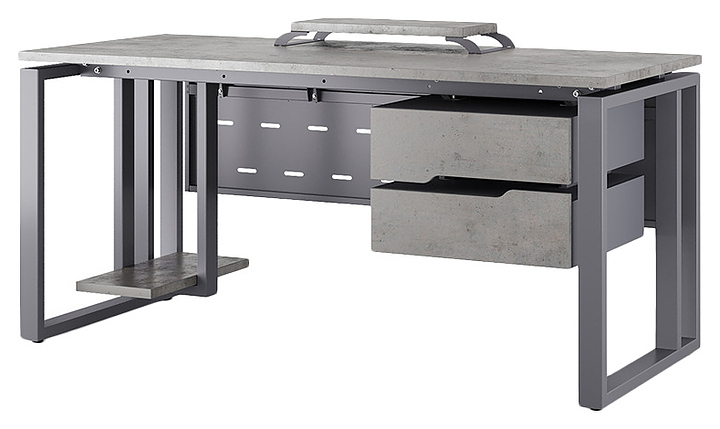 Офисный стол Кобор O2-180/60 graphite/chicago используется в офисных помещениях и кабинетах руководителей. Модель оснащена усиленными вертикальной балкой O-образными опорами. Каркас выполнен из металла, выкрашенного в цвет графит муар (RAL7024), столешница – из ламинированной древесно-стружечной плиты (ЛДСП) цвета бетон чикаго (F186 ST9). Опции (заказываются отдельно):