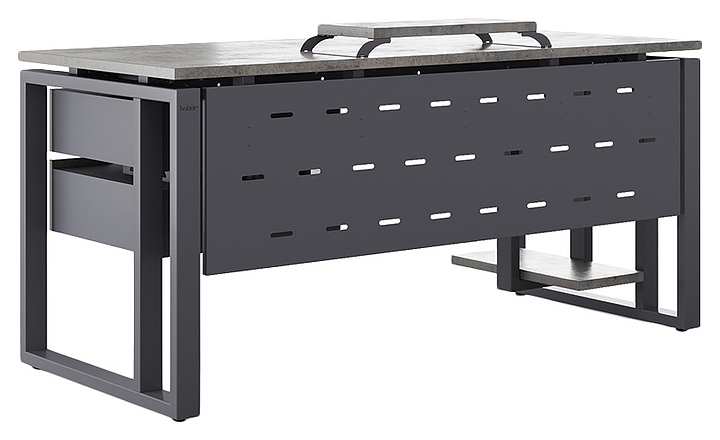 Офисный стол Кобор O2-140/80 graphite/chicagoиспользуется в офисных помещениях и кабинетах руководителей. Модель оснащена усиленными вертикальной балкой O-образными опорами. Каркас выполнен из металла, выкрашенного в цвет графит муар (RAL7024), столешница – из ламинированной древесно-стружечной плиты (ЛДСП) цвета бетон чикаго (F186 ST9). Опции (заказываются отдельно):