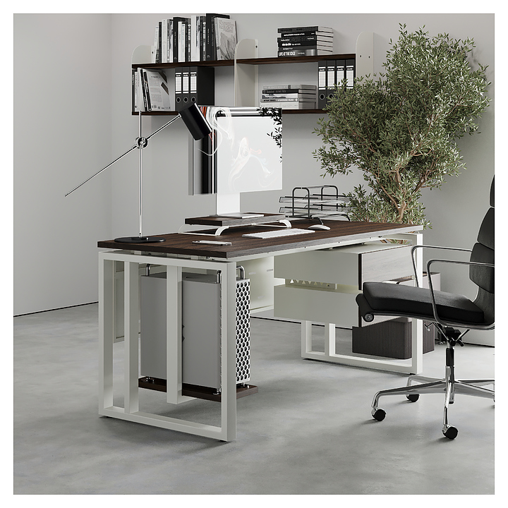 Офисный стол Кобор O2-140/70 white/charlston используется в офисных помещениях и кабинетах руководителей. Модель оснащена усиленными вертикальной балкой O-образными опорами. Каркас выполнен из металла, выкрашенного в цвет белый муар (RAL9016), столешница – из ламинированной древесно-стружечной плиты (ЛДСП) цвета дуб чарльстон (H3154 ST36). Опции (заказываются отдельно):
