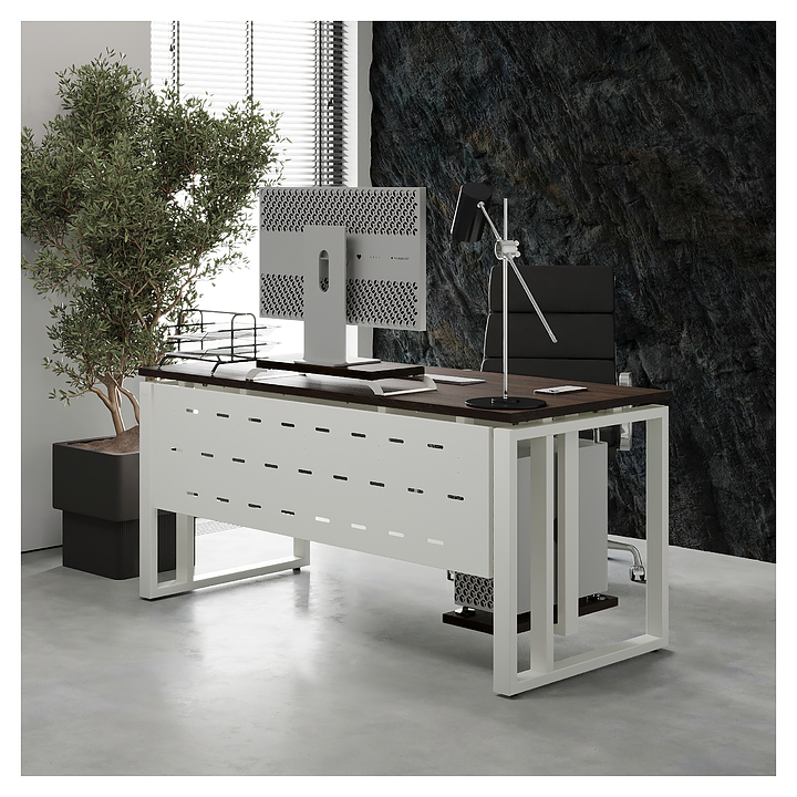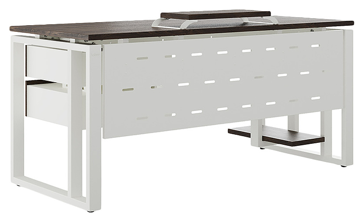 Офисный стол Кобор O2-120/80 white/charlston используется в офисных помещениях и кабинетах руководителей. Модель оснащена усиленными вертикальной балкой O-образными опорами. Каркас выполнен из металла, выкрашенного в цвет белый муар (RAL9016), столешница – из ламинированной древесно-стружечной плиты (ЛДСП) цвета дуб чарльстон (H3154 ST36). Опции (заказываются отдельно):
