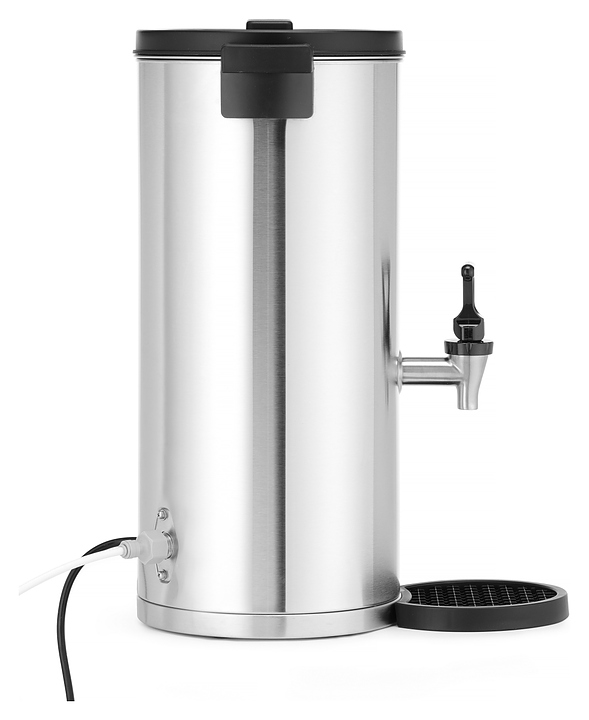 Кипятильник HENDI 240717 предназначен для нагрева и кипячения воды на предприятиях общественного питания и торговли. Модель оснащена двумя датчиками уровня воды, панелью управления с цифровым дисплеем и контроля температуры нагрева и датчиком предотвращения переполнения бойлера. Изделие выполнено из полированной нержавеющей стали с полипропиленовыми крышкой и ручками, кран - из нержавеющей стали и оснащен приятной на ощупь ручкой. В комплект поставки входят съемный поддон для сбора капель. Особенности: