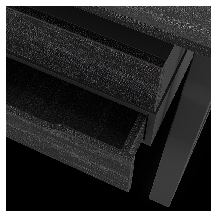 Офисный стол Кобор TR-120/80 black/glazed используется в офисных помещениях и кабинетах руководителей. Модель оснащена опорами в форме трапеции. Каркас выполнен из металла, выкрашенного в цвет черный муар (RAL9005), столешница – из ламинированной древесно-стружечной плиты (ЛДСП) цвета черный дуб (H3178 ST37). Опции (заказываются отдельно):