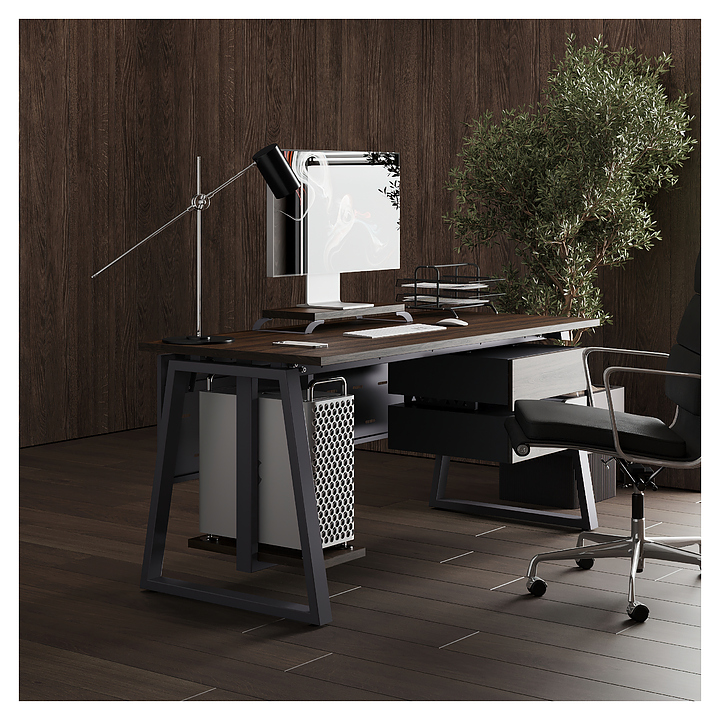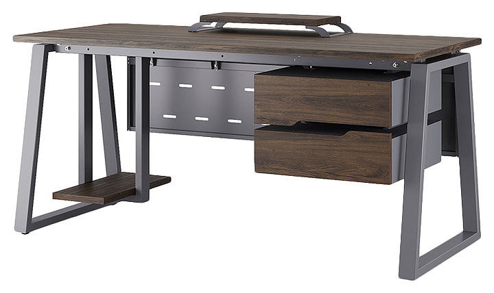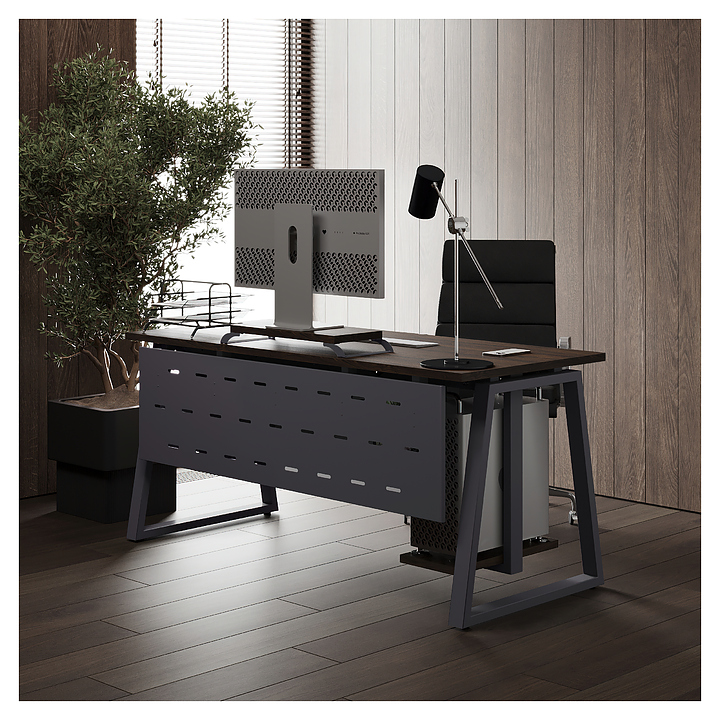 Офисный стол Кобор TR-180/80 graphite/charlston используется в офисных помещениях и кабинетах руководителей. Модель оснащена опорами в форме трапеции. Каркас выполнен из металла, выкрашенного в цвет графит муар (RAL7024), столешница – из ламинированной древесно-стружечной плиты (ЛДСП) цвета дуб чарльстон (H3154 ST36). Опции (заказываются отдельно):