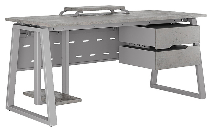 Офисный стол Кобор TR-80/80 aluminum/chicago используется в офисных помещениях и кабинетах руководителей. Модель оснащена опорами в форме трапеции. Каркас выполнен из металла, выкрашенного в цвет алюминиевый металлик (RAL9006), столешница – из ламинированной древесно-стружечной плиты (ЛДСП) цвета бетон чикаго (F186 ST9). Опции (заказываются отдельно):