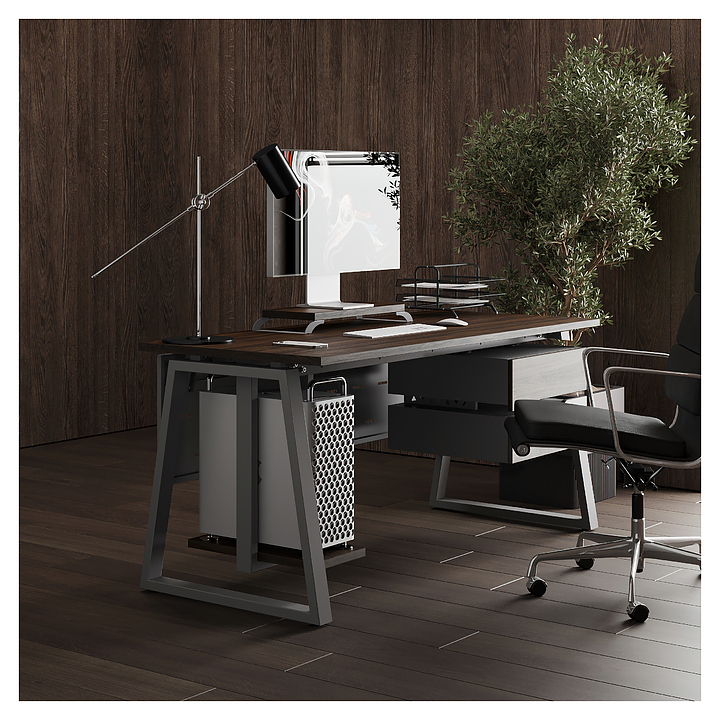 Офисный стол Кобор TR-120/70 aluminum/charlston используется в офисных помещениях и кабинетах руководителей. Модель оснащена опорами в форме трапеции. Каркас выполнен из металла, выкрашенного в цвет алюминиевый металлик (RAL9006), столешница – из ламинированной древесно-стружечной плиты (ЛДСП) цвета дуб чарльстон (H3154 ST36). Опции (заказываются отдельно):