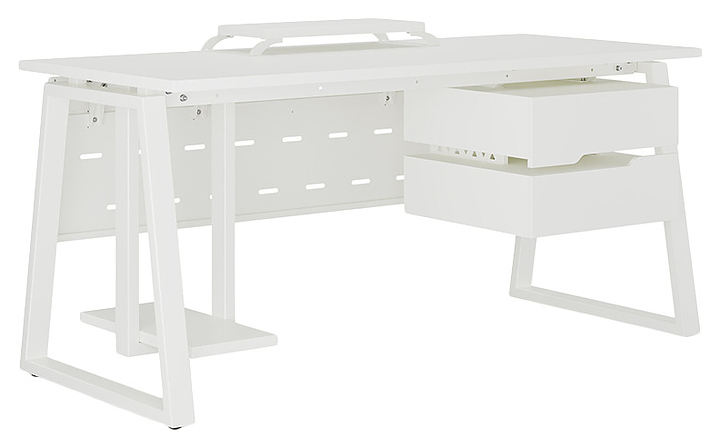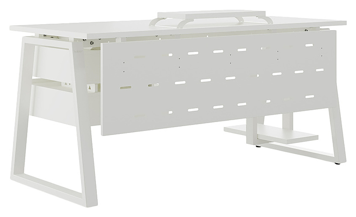 Офисный стол Кобор TR-100/80 white/premium используется в офисных помещениях и кабинетах руководителей. Модель оснащена опорами в форме трапеции. Каркас выполнен из металла, выкрашенного в цвет белый муар (RAL9016), столешница – из ламинированной древесно-стружечной плиты (ЛДСП) цвета белый премиум (W1000 ST9). Опции (заказываются отдельно):