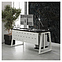Офисный стол Кобор TR-80/80 white/glazed используется в офисных помещениях и кабинетах руководителей. Модель оснащена опорами в форме трапеции. Каркас выполнен из металла, выкрашенного в цвет белый муар (RAL9016), столешница – из ламинированной древесно-стружечной плиты (ЛДСП) цвета черный дуб (H3178 ST37). Опции (заказываются отдельно):