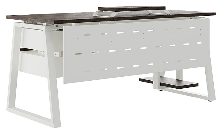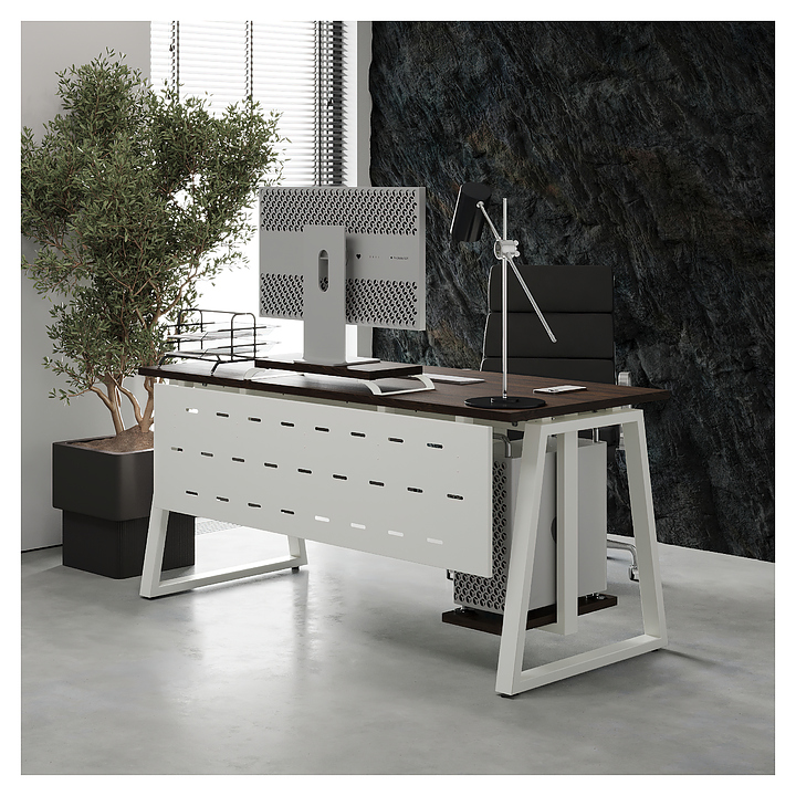 Офисный стол Кобор TR-160/80 white/charlston используется в офисных помещениях и кабинетах руководителей. Модель оснащена опорами в форме трапеции. Каркас выполнен из металла, выкрашенного в цвет белый муар (RAL9016), столешница – из ламинированной древесно-стружечной плиты (ЛДСП) цвета дуб чарльстон (H3154 ST36). Опции (заказываются отдельно):