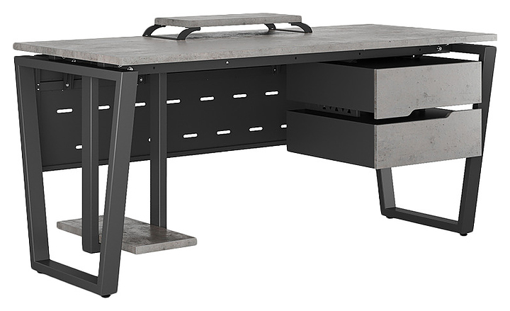 Офисный стол Кобор OTR-160/70 black/chicago используется в офисных помещениях и кабинетах руководителей. Модель оснащена опорами в форме обратной трапеции. Каркас выполнен из металла, выкрашенного в цвет черный муар (RAL9005), столешница – из ламинированной древесно-стружечной плиты (ЛДСП) цвета бетон чикаго (F186 ST9). Опции (заказываются отдельно):