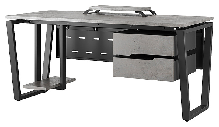 Офисный стол Кобор OTR-180/70 black/chicago используется в офисных помещениях и кабинетах руководителей. Модель оснащена опорами в форме обратной трапеции. Каркас выполнен из металла, выкрашенного в цвет черный муар (RAL9005), столешница – из ламинированной древесно-стружечной плиты (ЛДСП) цвета бетон чикаго (F186 ST9). Опции (заказываются отдельно):
